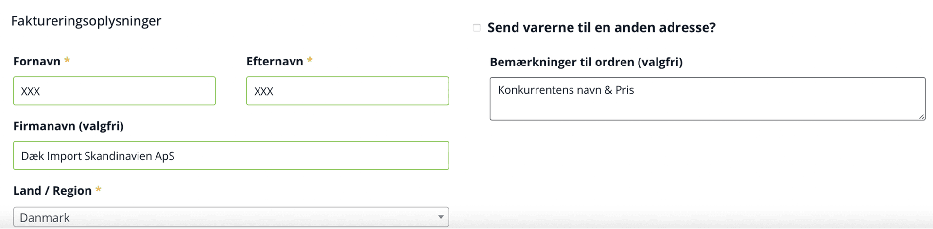 Når du ønsker at gøre brug af 103% prisgaranti, gennemfører du blot din ordre og skriver “konkurrentens navn og pris” i bemærkningsfeltet i indkøbskurven.